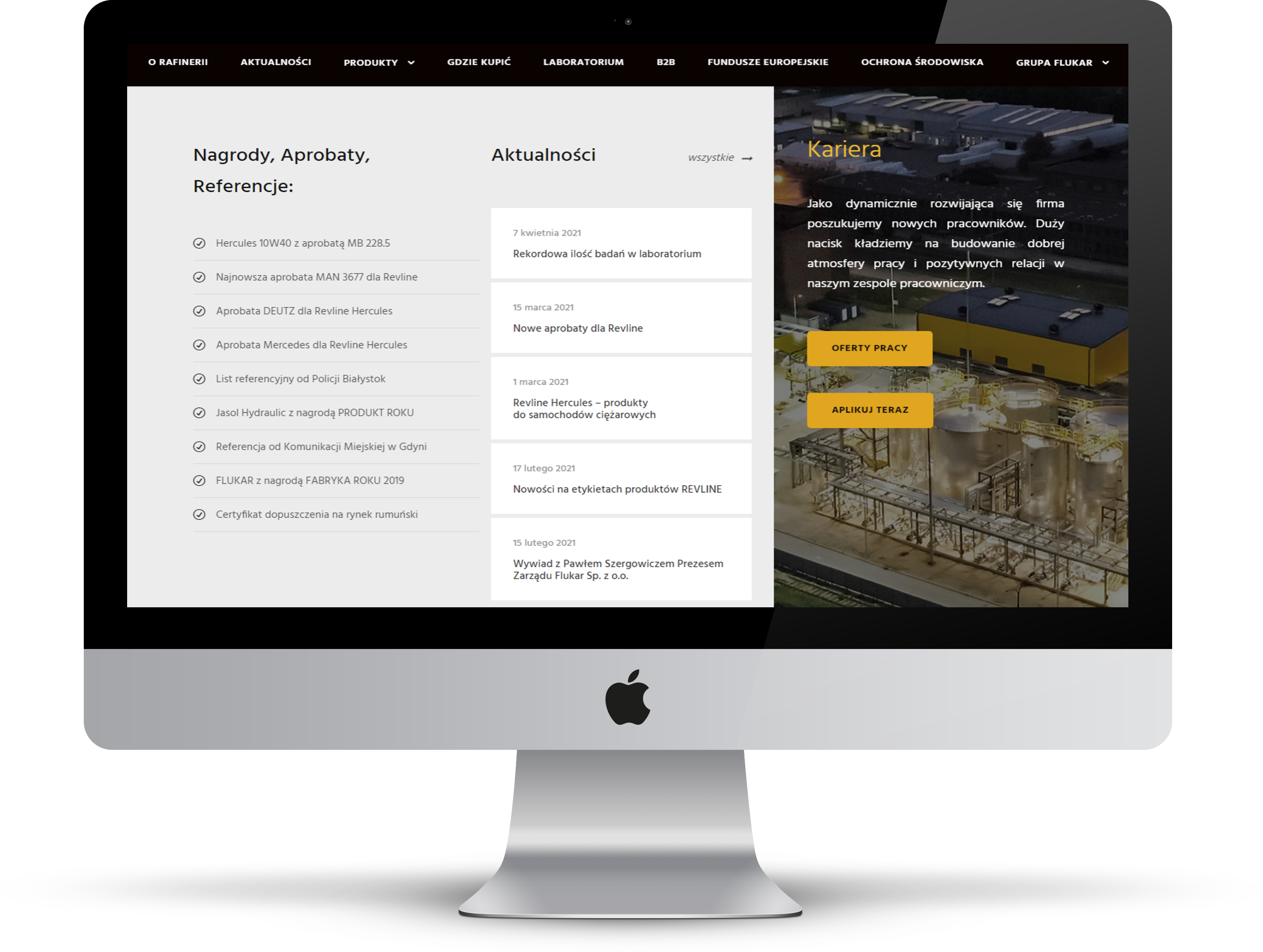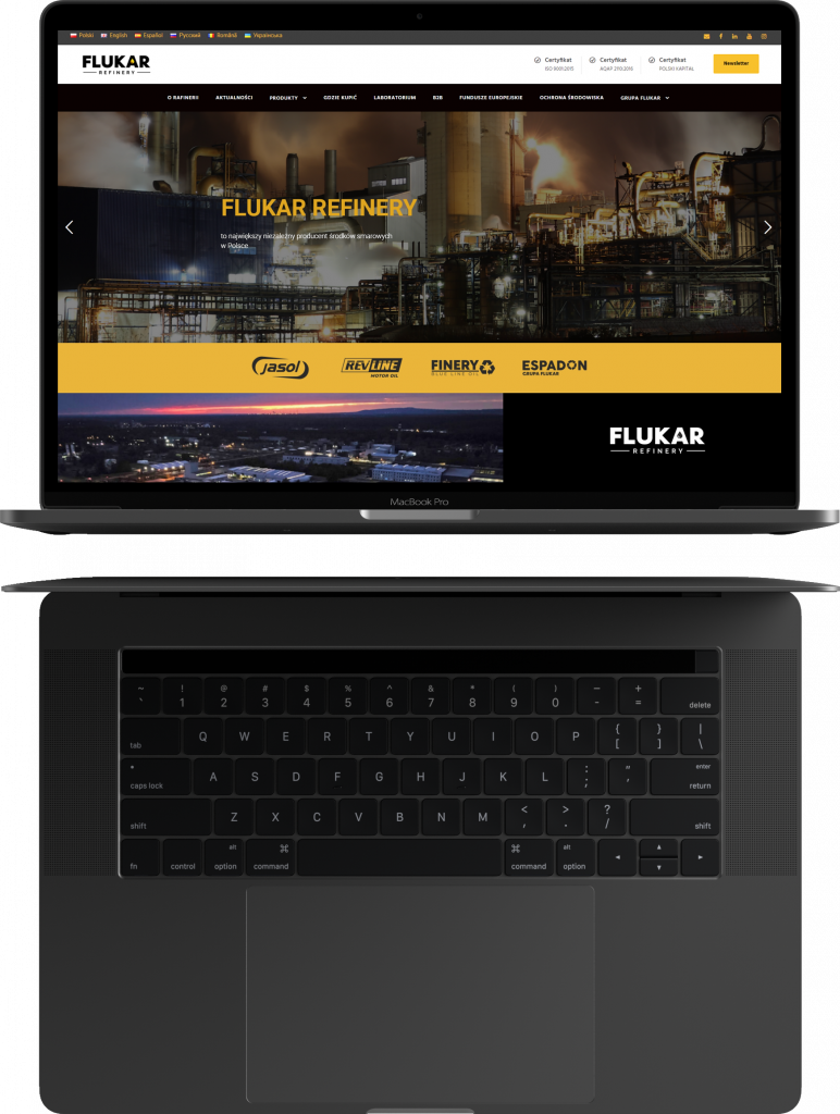 Flukar Sp. z o.o. wchodzi w skład grupy kapitałowej, która w 2013 roku przejęła zorganizowaną część przedsiębiorstwa LOTOS OIL na terenie byłej Rafinerii Jasło. Strona internetowa wykonana została w sześciu wersjach językowych, nieco różniących się od siebie. Strona nieustannie jest przez nas rozwijana z uwagi na szeroką ofertę produktową firmy Flukar Sp. z o.o.